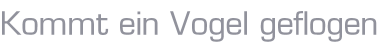 Kommt ein Vogel geflogen,Setzt sich nieder auf mein Fuß,Hat ein Zetterl im Schnabel,Von der Mutter einen Gruß.Lieber Vogel, fliege weiter!Nimm ein Gruß mit und ein Kuß,Denn ich kann dich nicht begleitenWeil ich hier bleiben muß. Übersicht