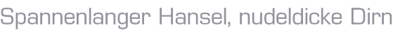 Spannenlanger Hansel, Nudeldicke Dirn' Geh'n wir in den Garten Schütteln wir die Birn'. Schüttle ich die großen, Schüttelst du die klein' Wenn das Säcklein voll ist, Geh'n wir wieder heim.